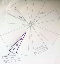 ![]() sketch of the pattern method for the skirt | ![]() Describe your image | ![]() Describe your image |